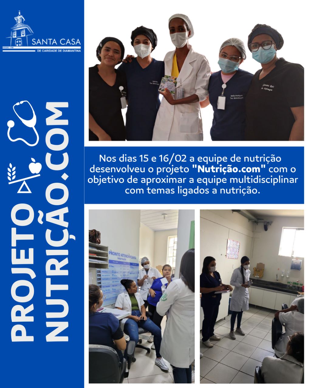 Nos dias 15 e 16/02 a equipe de nutrição desenvolveu o projeto “Nutrição.com” com o objetivo de aproximar a equipe multidisciplinar com temas ligados a nutrição.